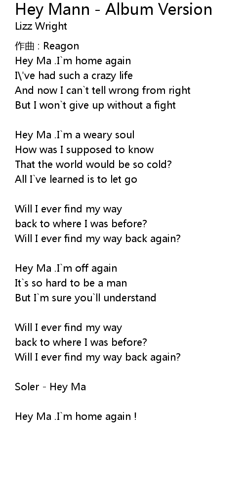 | 歌曲 | Hey Mann - Album Version |