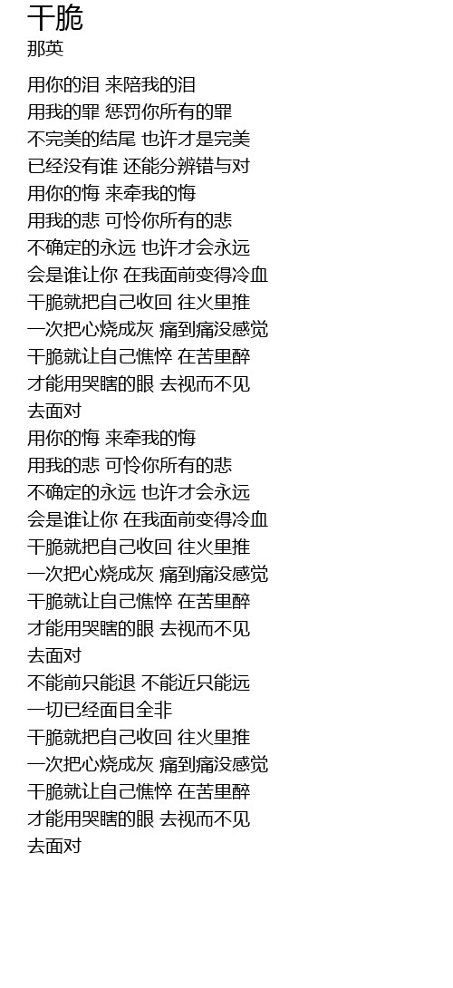 | [02:56.600] | bù néng qián zhǐ néng tuì bù néng jìn zhǐ néng yuǎn |
