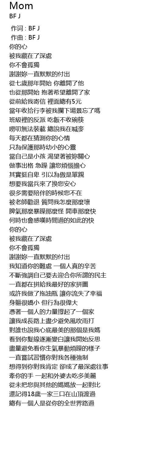 | [01:15.170] | 其實挺自卑 引以為傲是單親 |