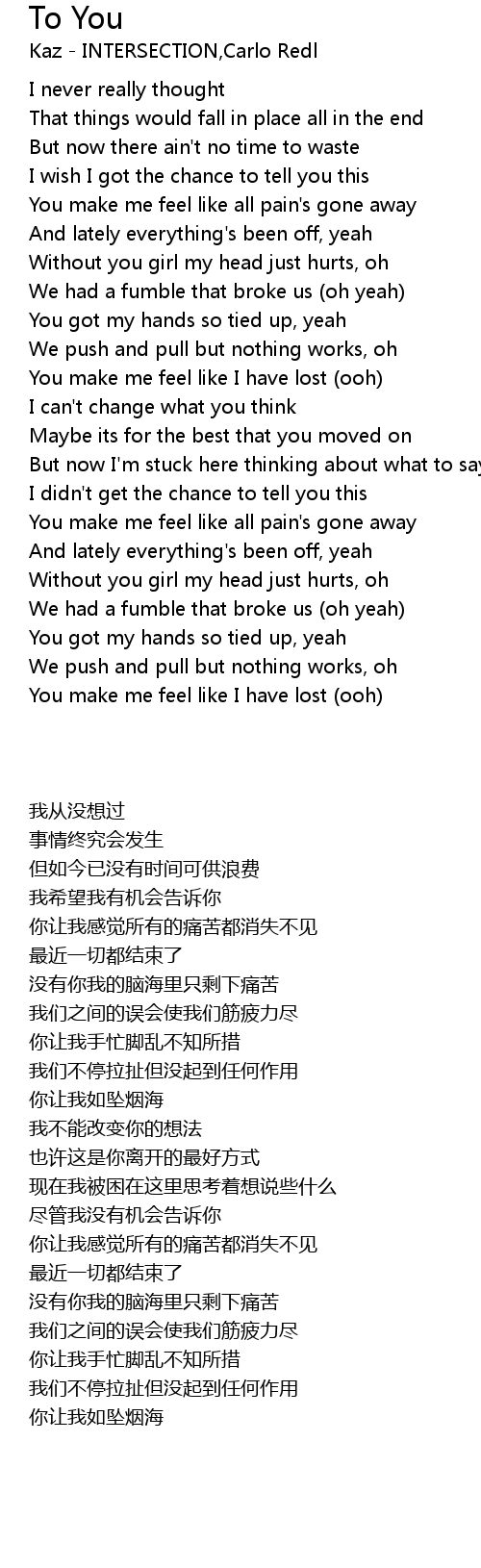 You make me feel like all pain's gone away |