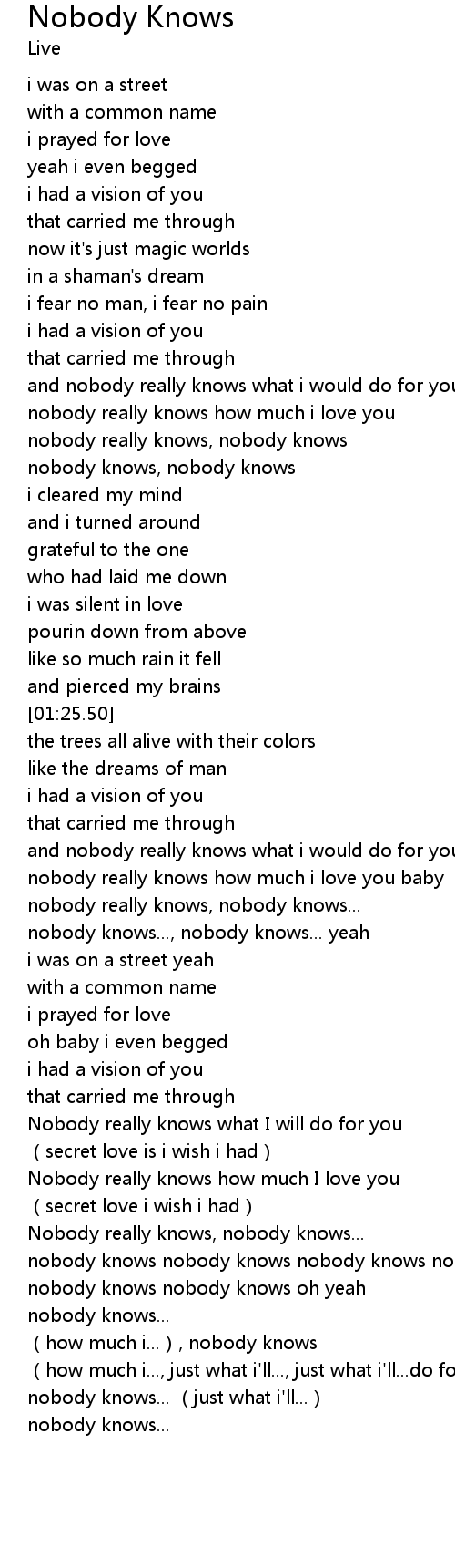 | [03:45.50] | (how much i...), nobody knows |