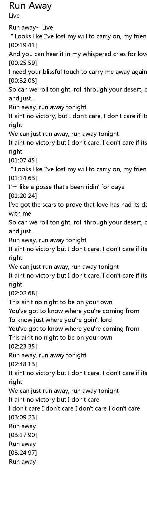 | [01:43.74] | It aint no victory but I don' t care, I don' t care if its wrong or right |
