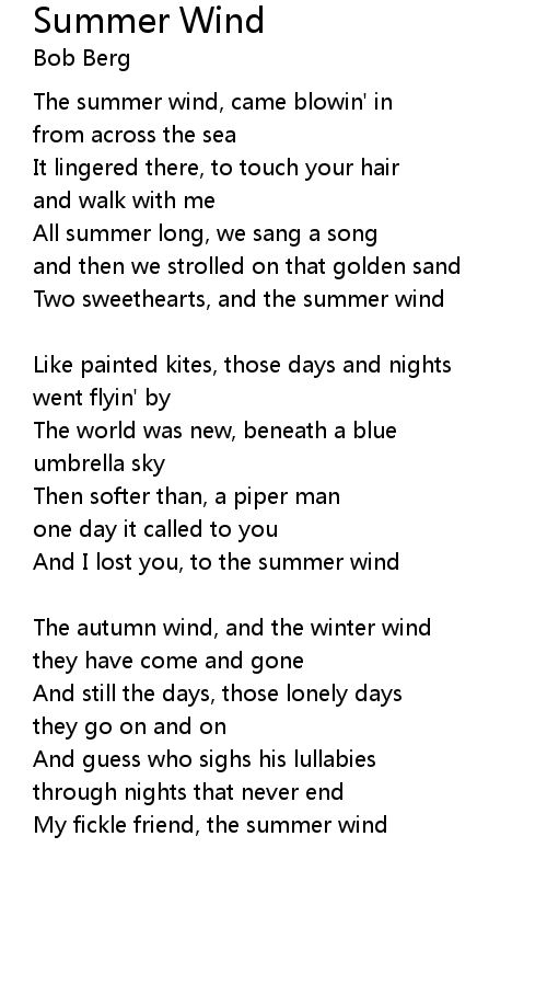 And I lost you, to the summer wind |