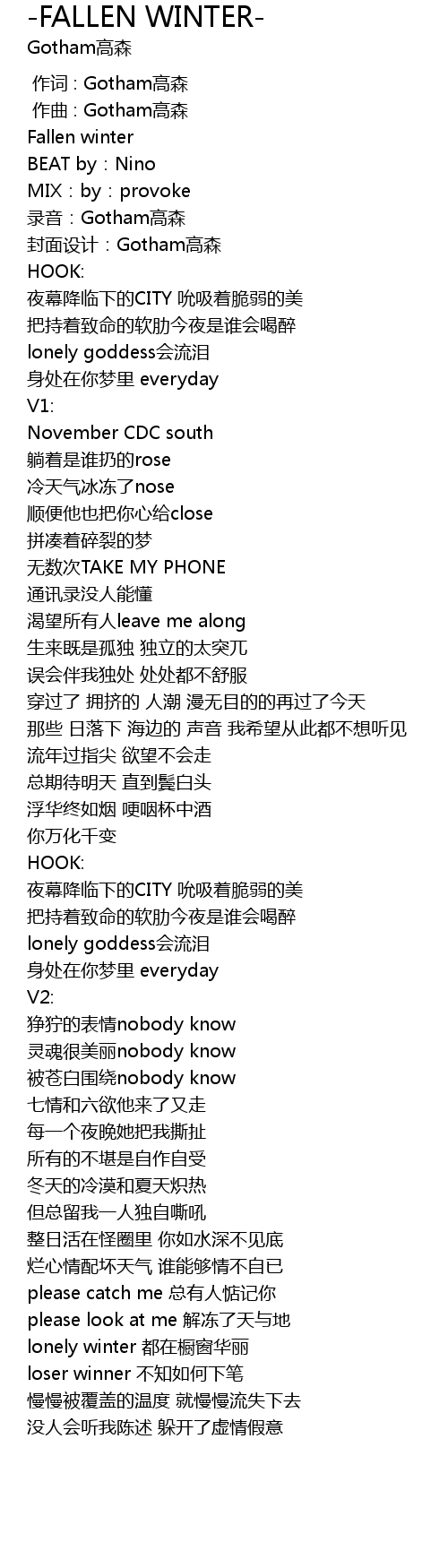 | [00:01.000] | zuò qǔ : Gotham gāo sēn |