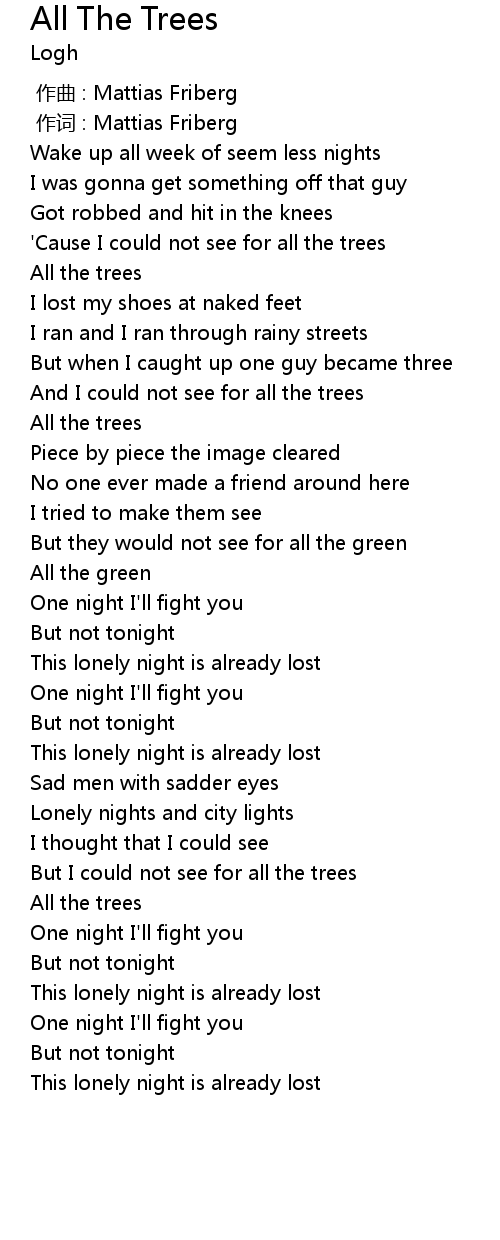 | [00:17.900] | All the trees |