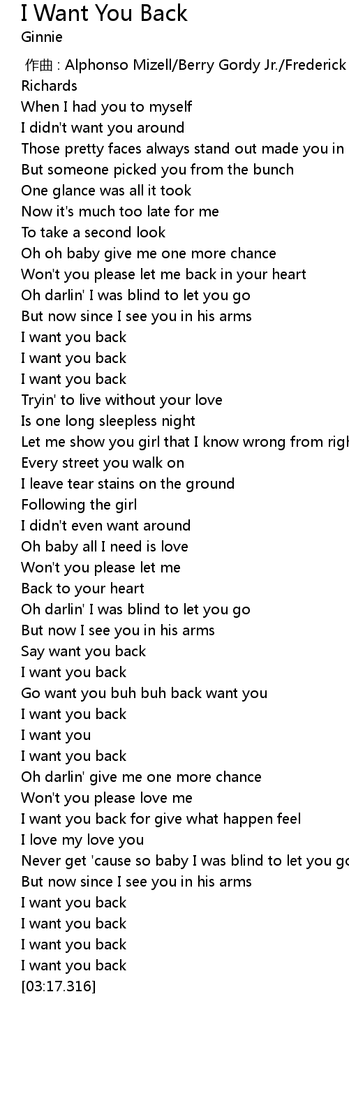 | [02:56.131] | Never get ' cause so baby I was blind to let you go |