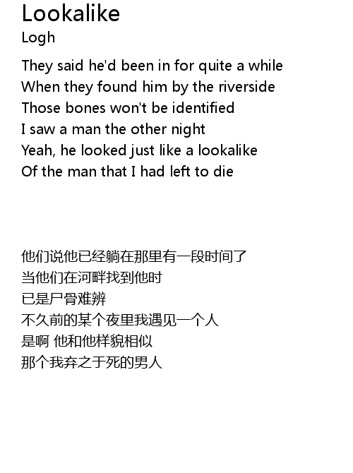 | [01:49.500] | Yeah, he looked just like a lookalike |