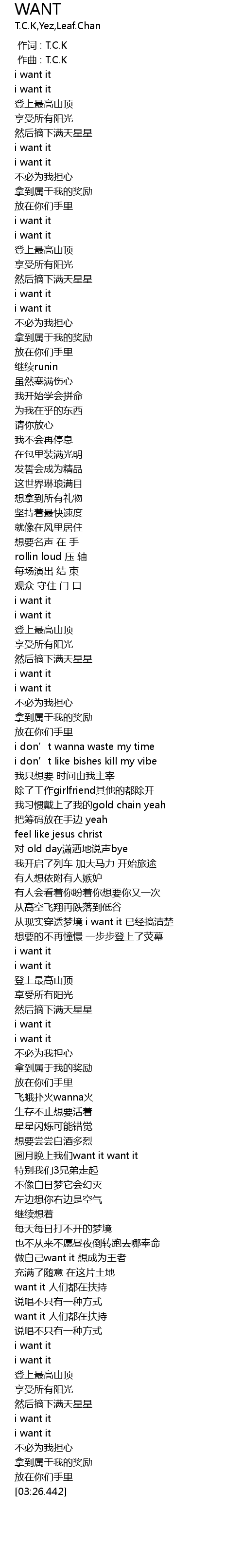 | [01:49.759] | 我习惯戴上了我的gold chain yeah |