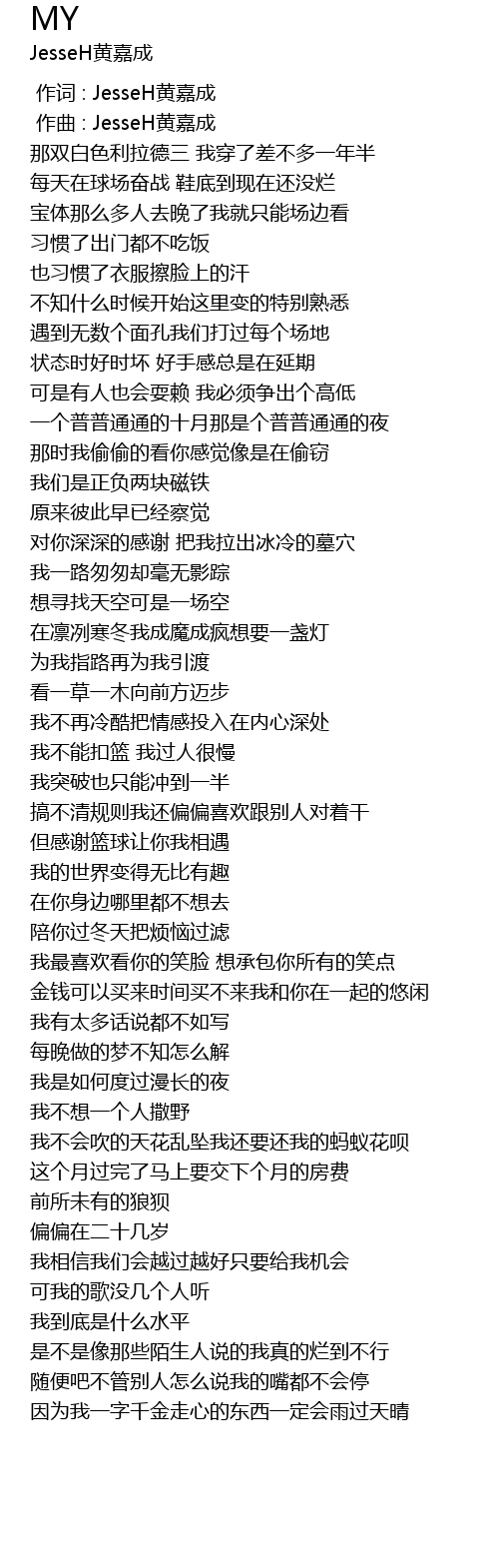 | [00:00.000] | 作词 : JesseH黄嘉成 |