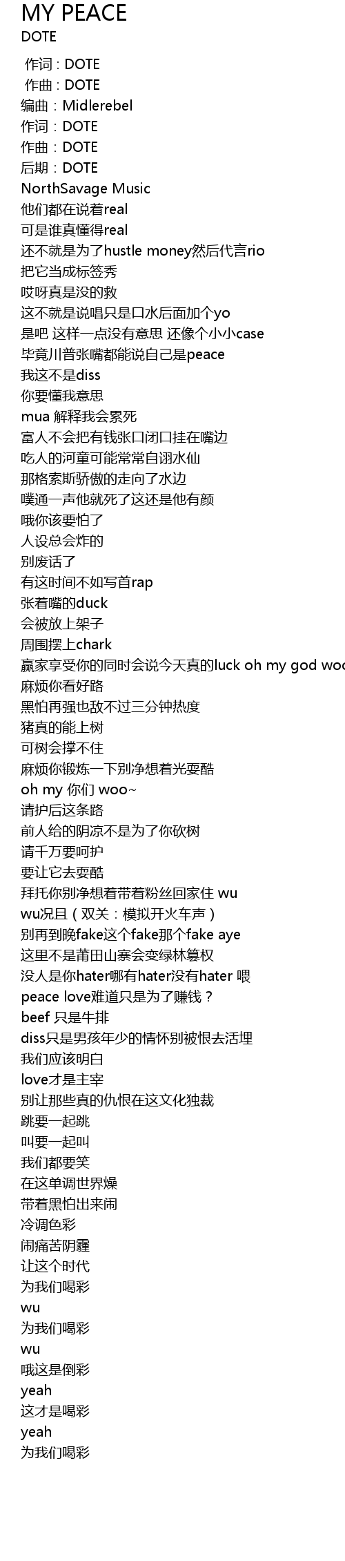 | [01:42.662] | peace love nán dào zhǐ shì wèi le zhuàn qián? |