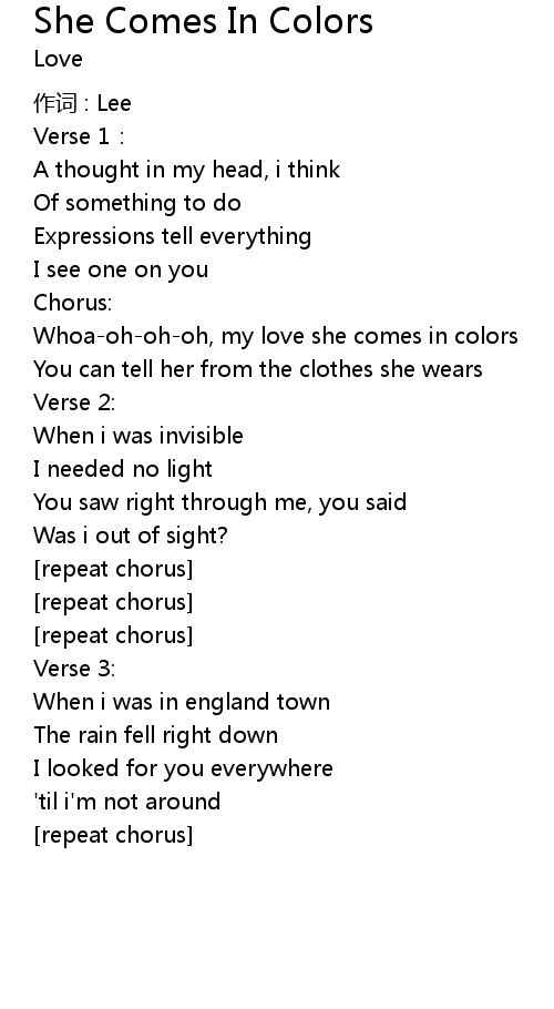 | 歌曲 | She Comes In Colors |