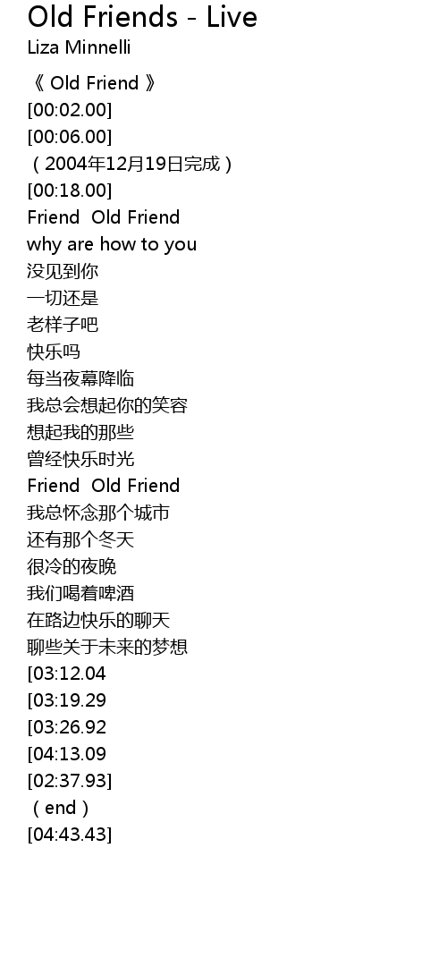 | [00:00.00] | 《 Old Friend 》 |