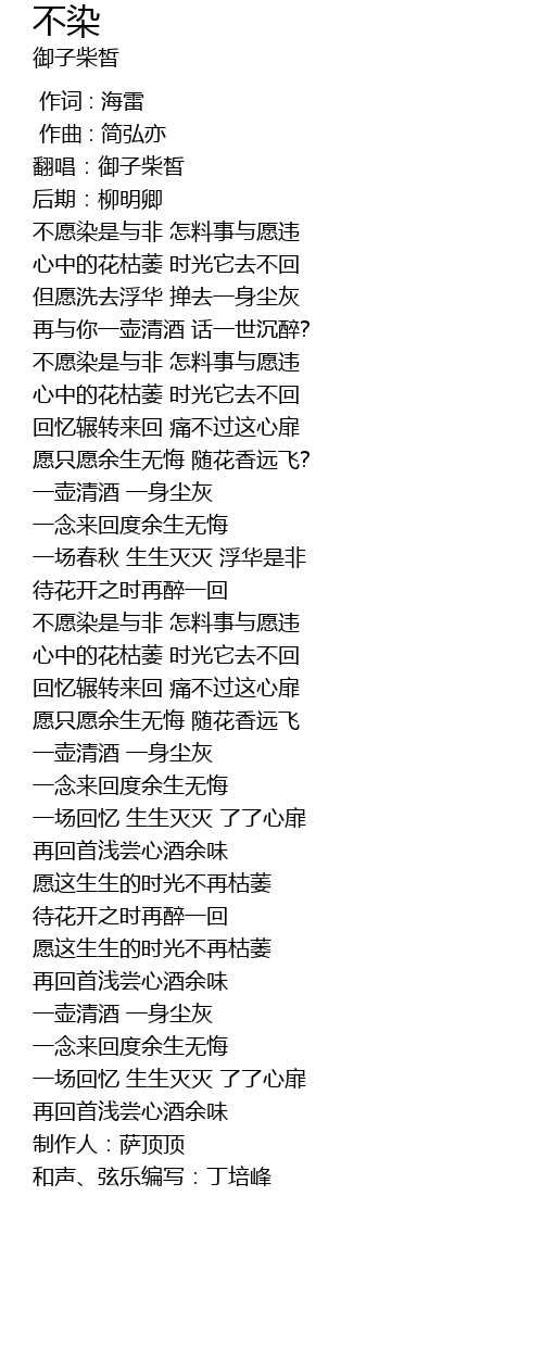 | [00:56.02] | 不愿染是与非 怎料事与愿违 |