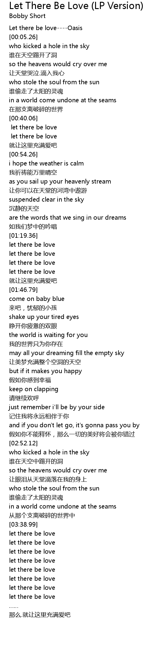 | [03:53.74] | let there be love |