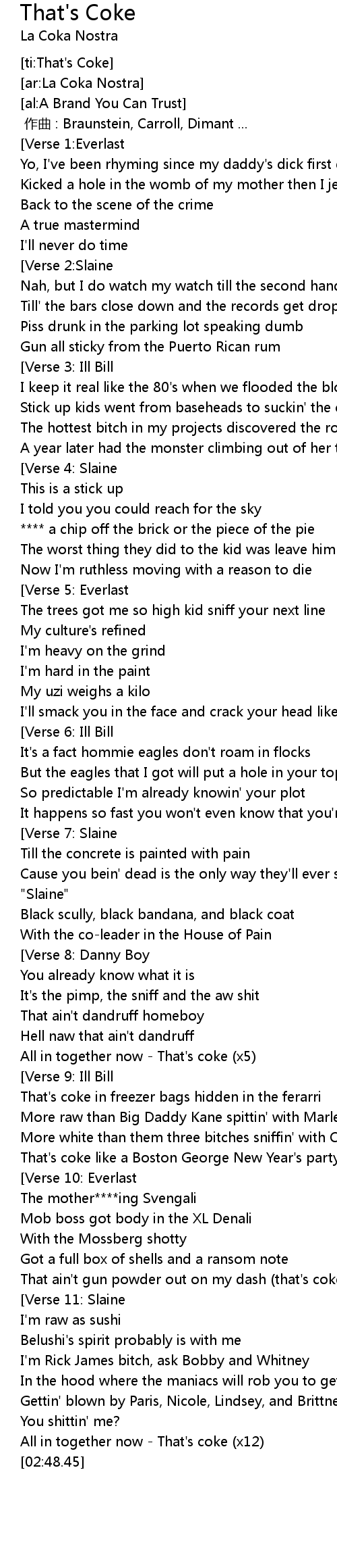 | [02:27.09] | All in together now - That's coke (x12) |