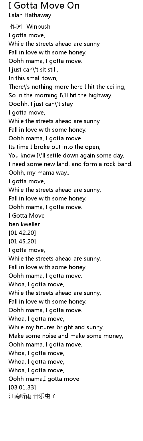 | [00:32.96] | Ooohh, I just can\'t stay |