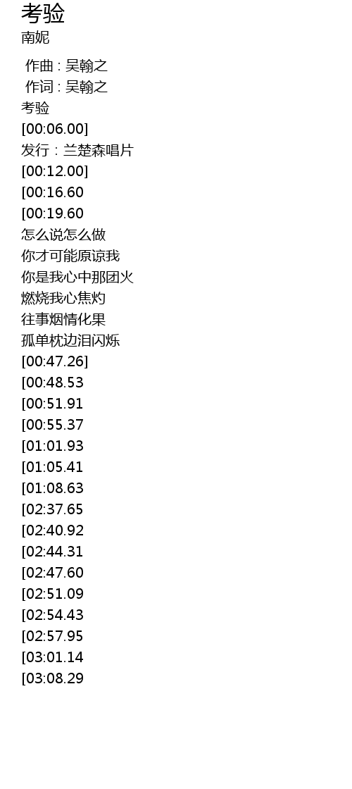 | [03:34.81][02:54.43][01:31.77] | 再给我一次考验 |