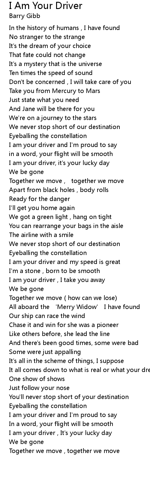 | I am your driver and I'm proud to say | |