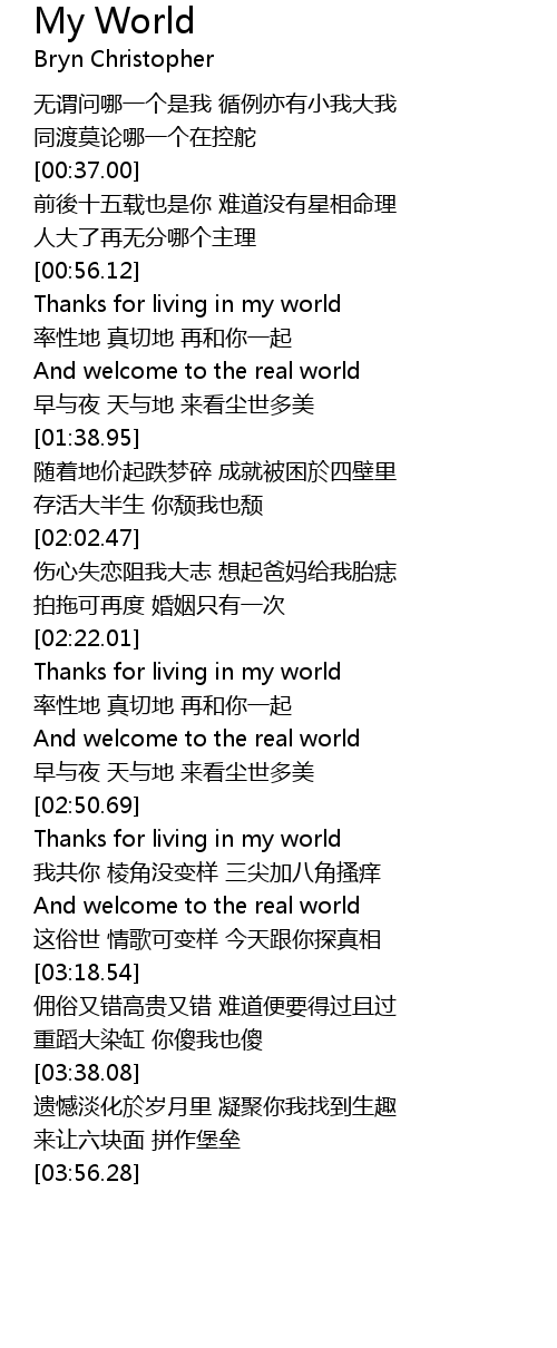 | [00:58.15] | Thanks for living in my world |