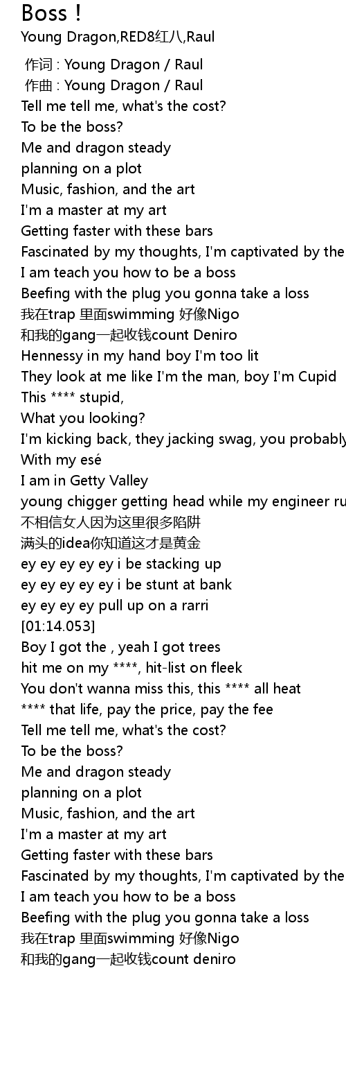 | [01:49.489] | I am teach you how to be a boss |