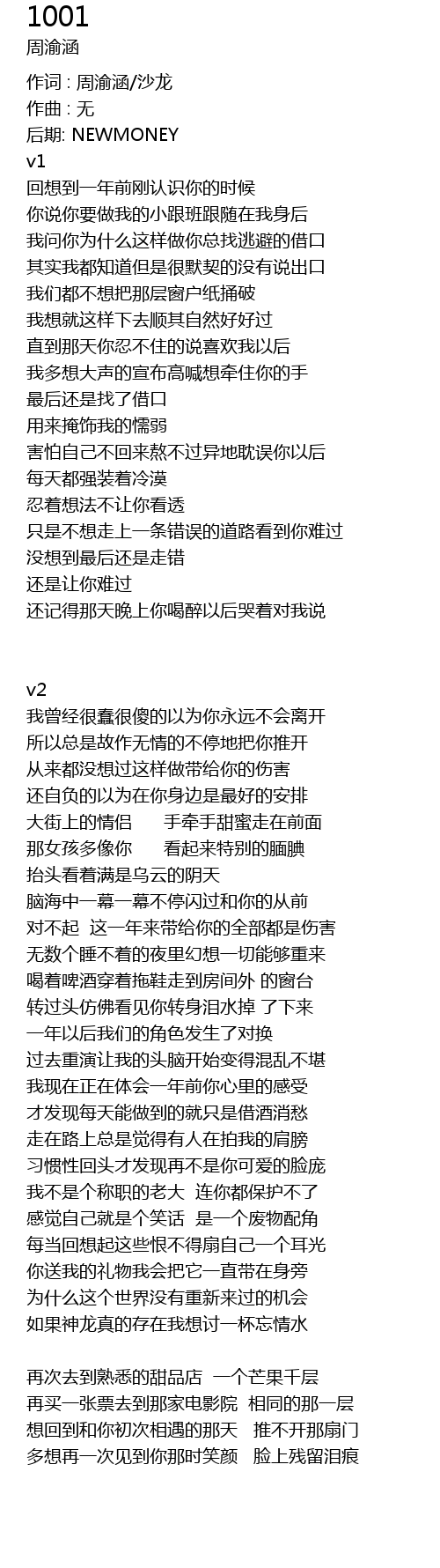 | 作词 : 周渝涵/沙龙 | |