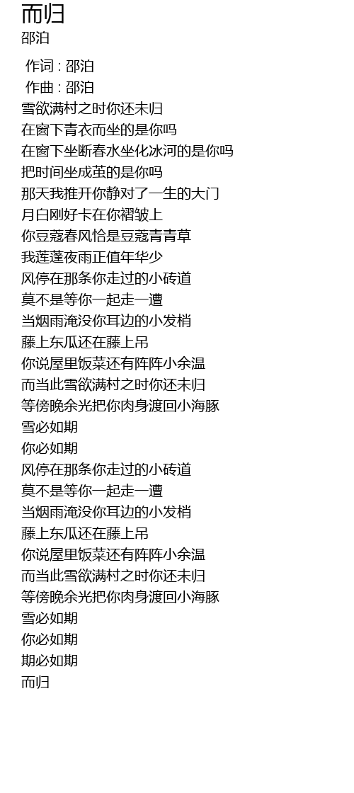 | [02:11.437] | ér dāng cǐ xuě yù mǎn cūn zhī shí nǐ hái wèi guī |