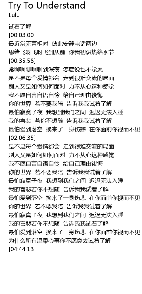 | 歌曲 | Try To Understand |