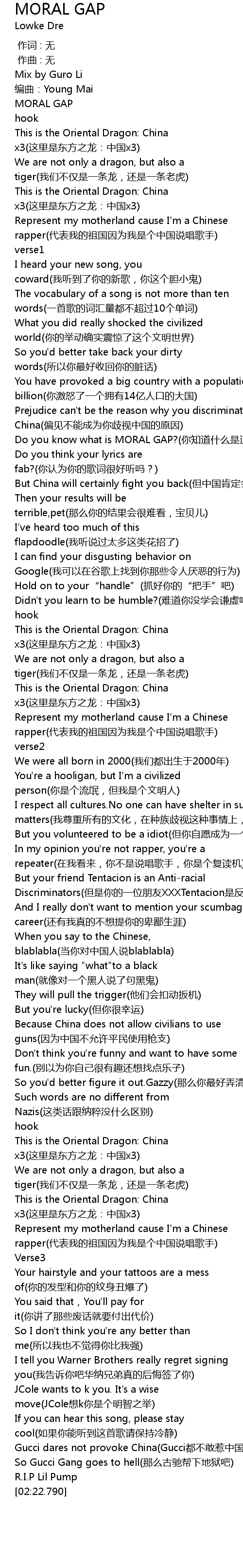 | 专辑 | MORAL GAP(Lil Pump diss) |