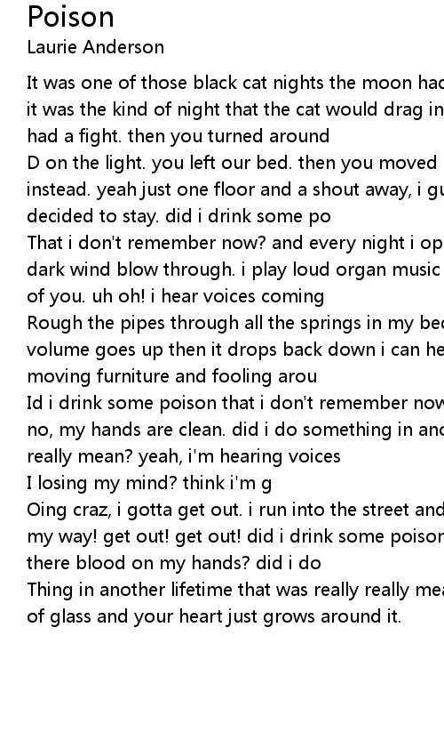 Id i drink some poison that i don't remember now? is there blood on my hands/ no, my hands are clean. did i do something in another lifetime that was really really mean? yeah, i'm hearing voices |