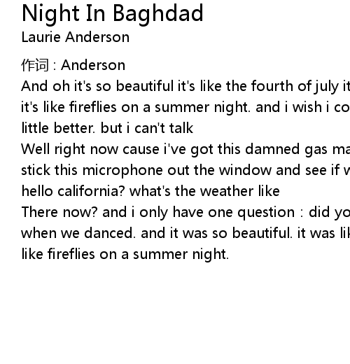 | And oh it' s so beautiful it' s like the fourth of july it' s like a christmas tree it' s like fireflies on a summer night. and i wish i could describe this to you a little better. but i can' t talk | |