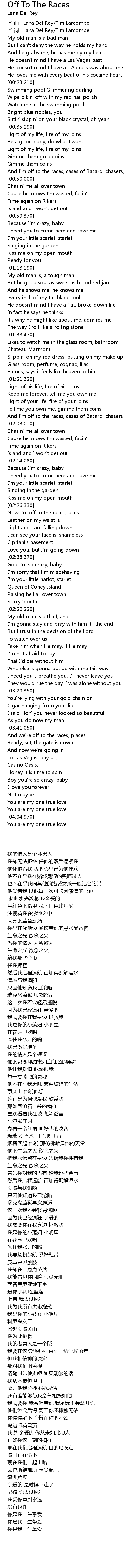 | [00:00.533] | zuò cí : Lana Del Rey Tim Larcombe |