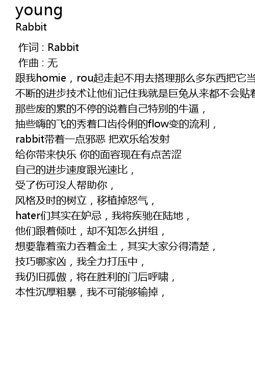 | [00:39.193] | rabbit带着一点邪恶 把欢乐给发射 |