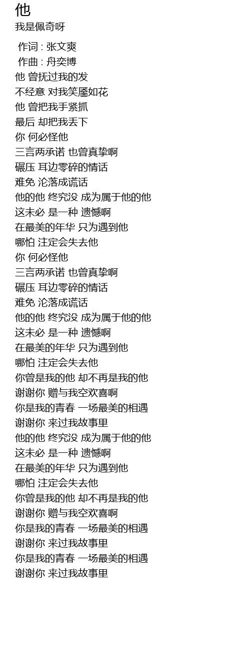 | [03:31.018] | 你曾是我的他 却不再是我的他 |