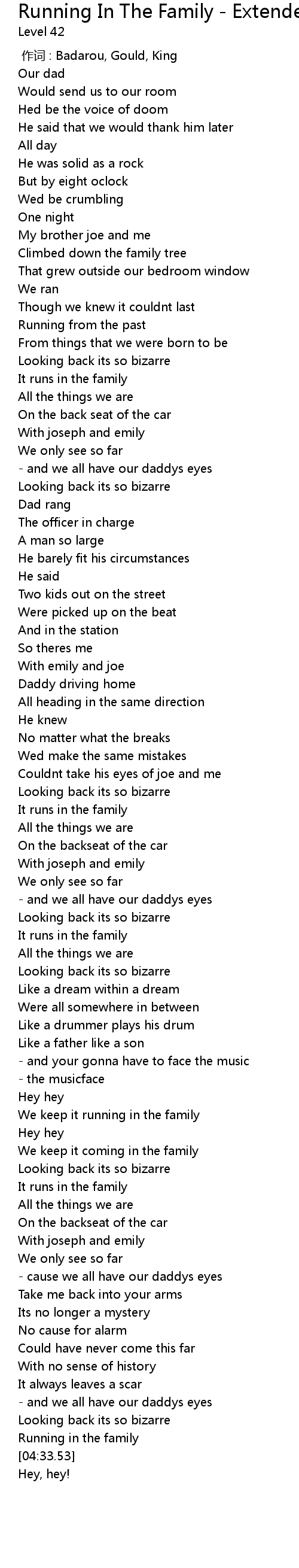 | [04:26.35] | Running in the family |