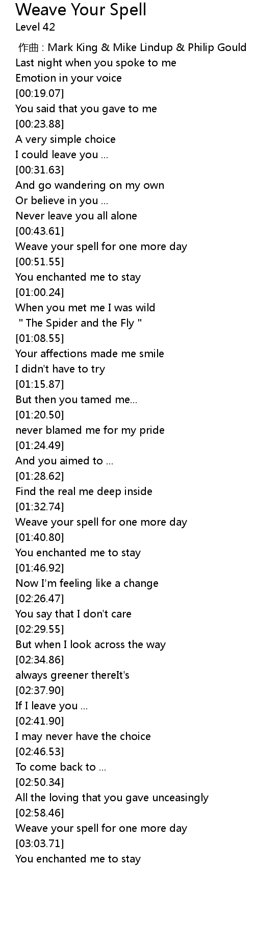 | [00:44.80] | Weave your spell for one more day |