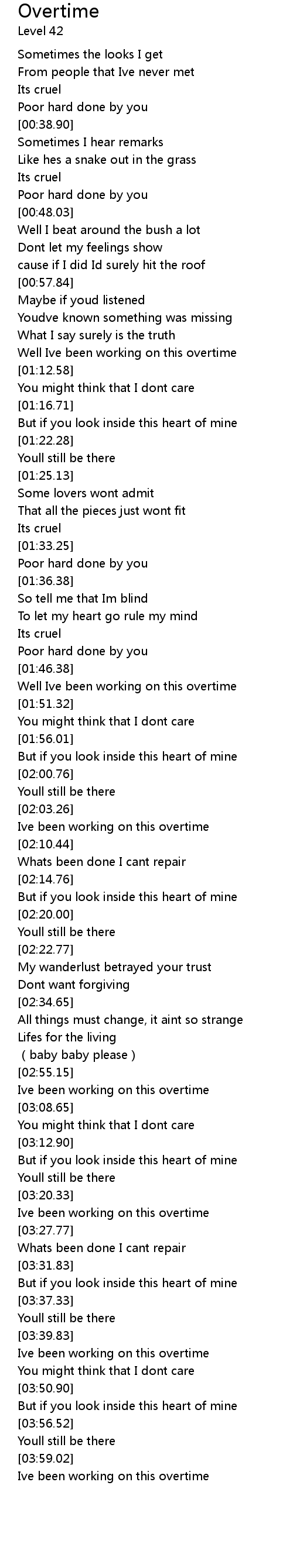 | [04:03.42] | Ive been working on this overtime |
