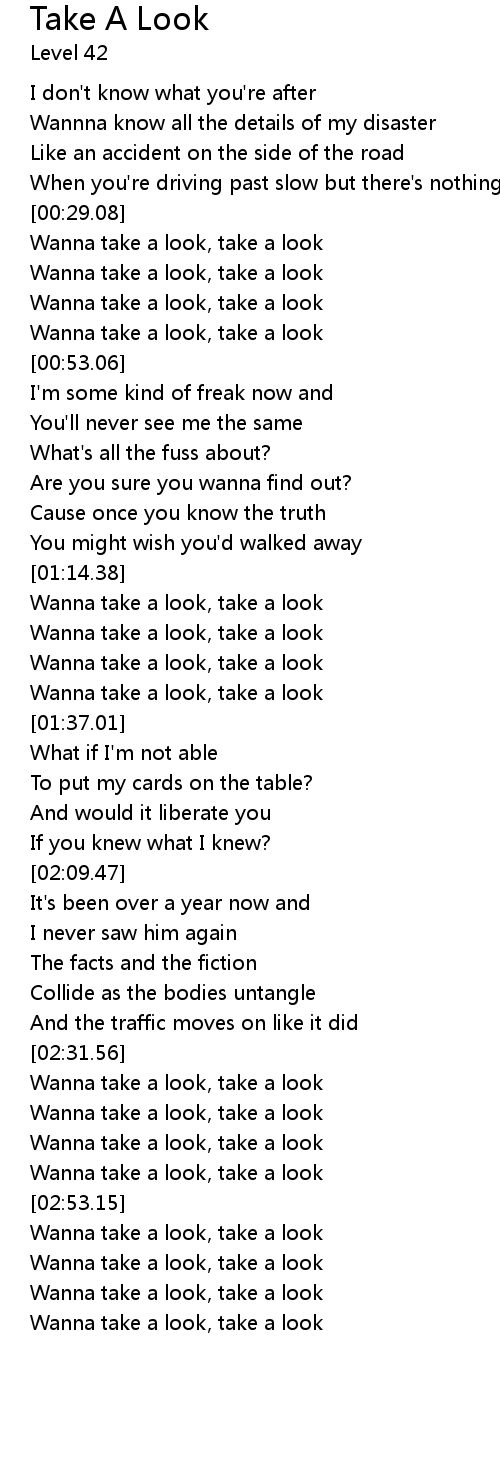 | [00:42.77] | Wanna take a look, take a look |