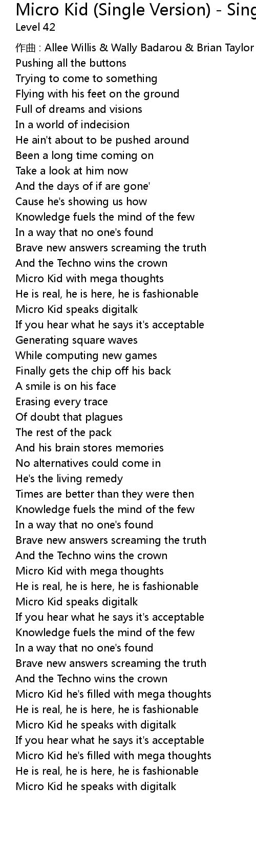 | 歌曲 | Micro Kid (Single Version) - Single Version |