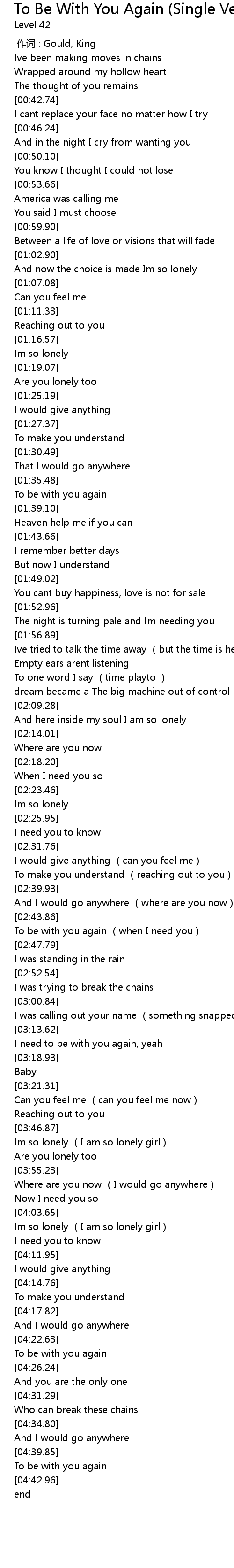 | 歌曲 | To Be With You Again (Single Version) - Single Version |