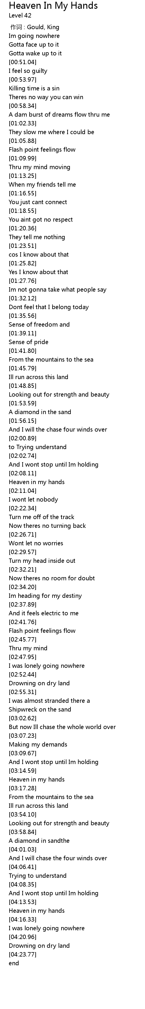 | [04:14.46] | Heaven in my hands |