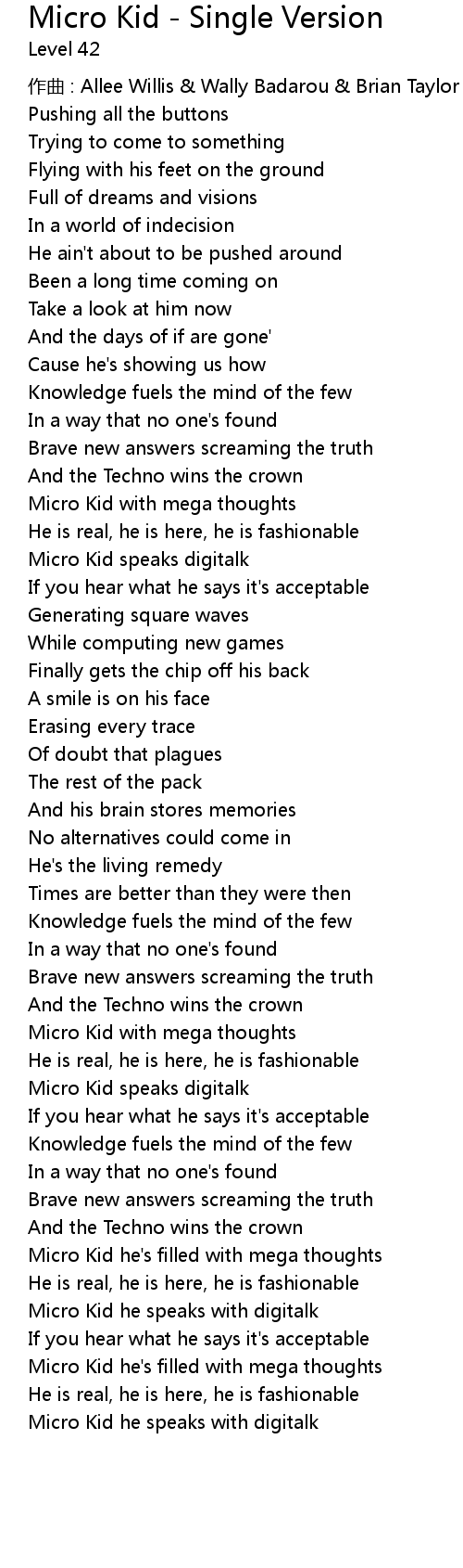 | 歌曲 | Micro Kid - Single Version |