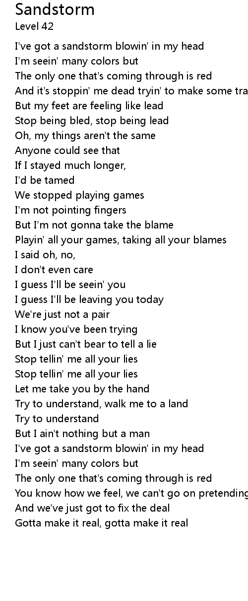 I've got a sandstorm blowin' in my head |