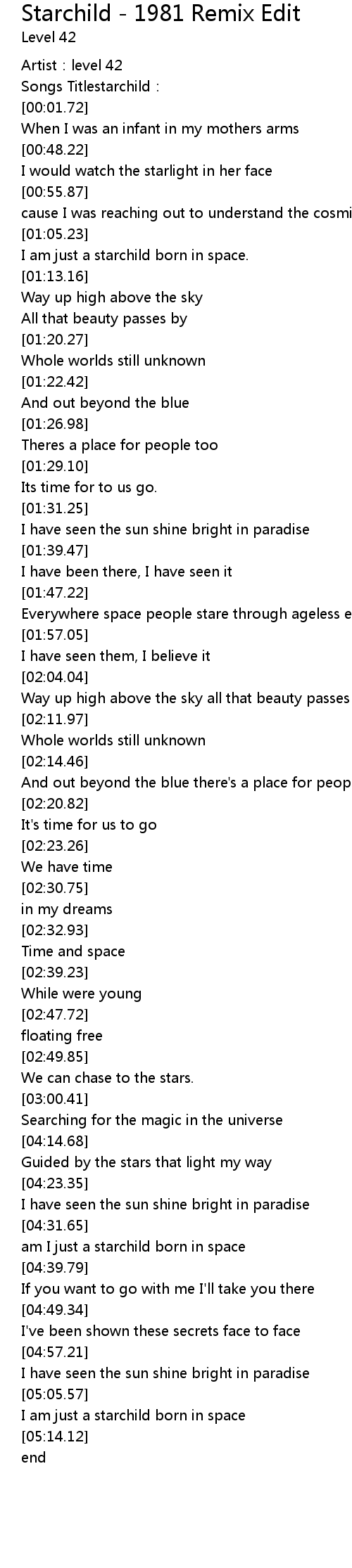 | 歌曲 | Starchild - 1981 Remix Edit |