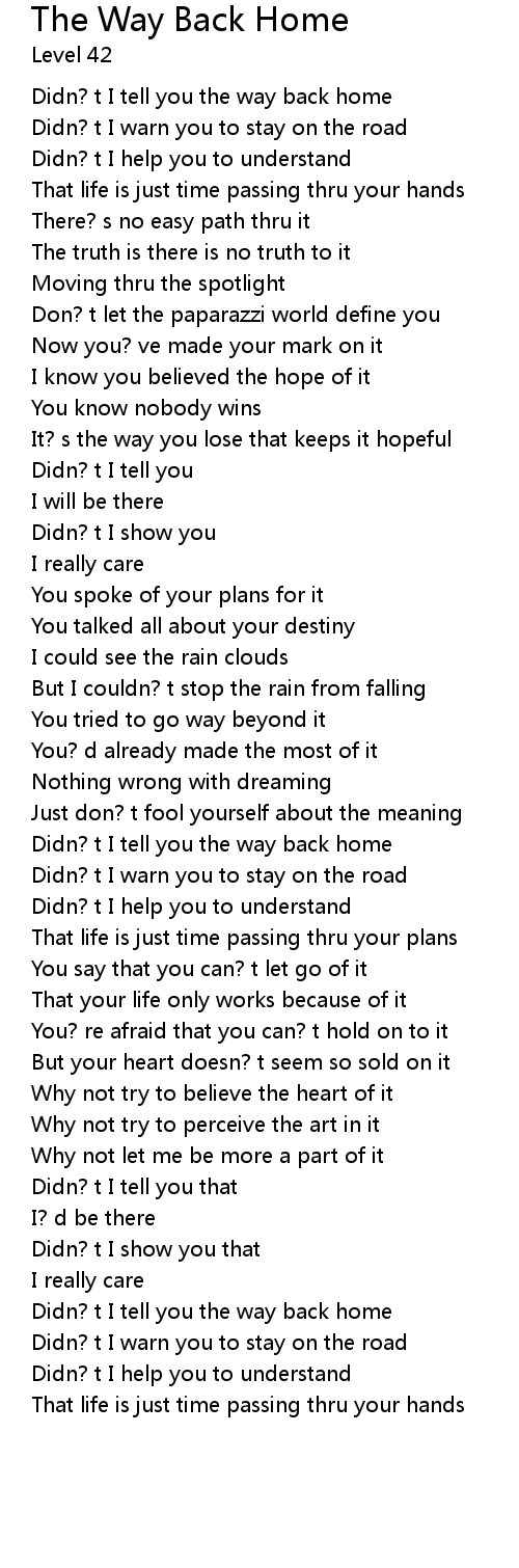 Didn? t I tell you the way back home |