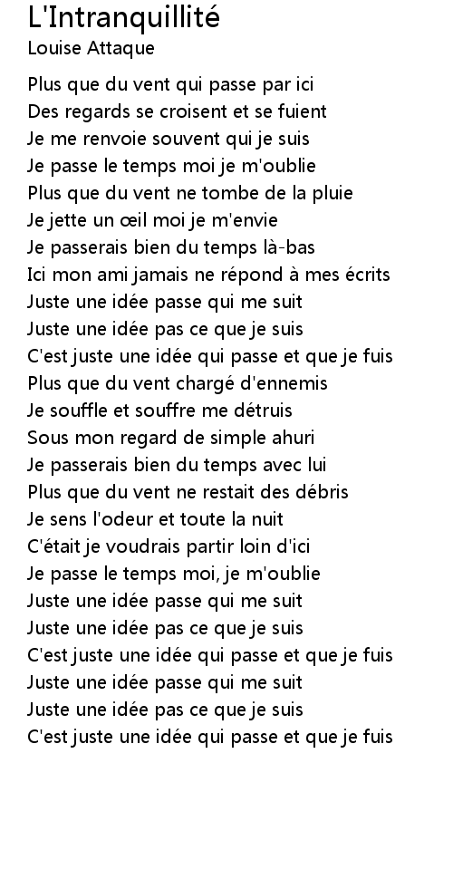 | 歌曲 | L'Intranquillité |