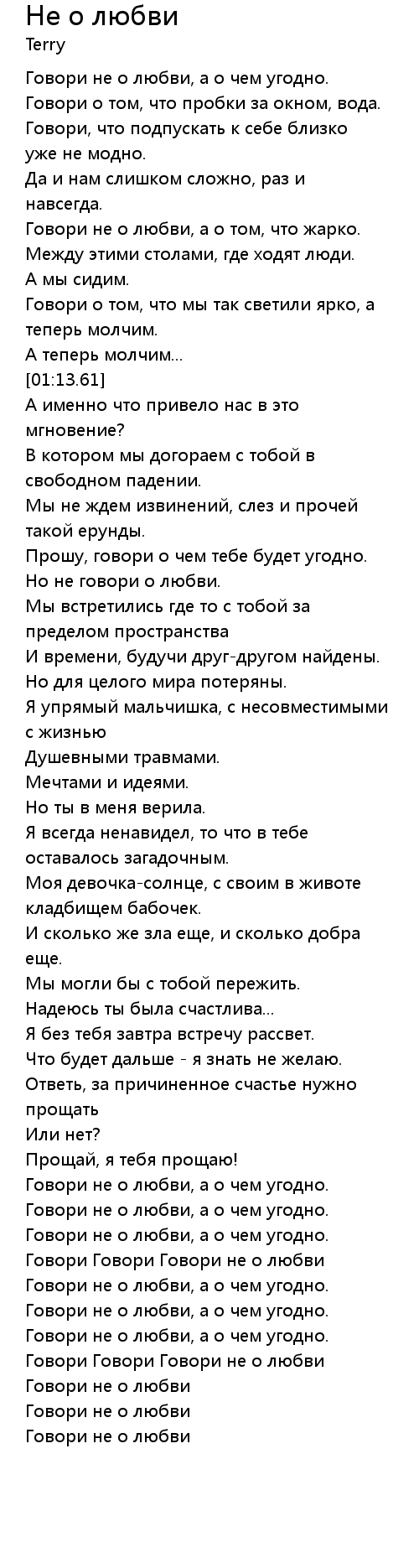 [00:43.48] Говори не о любви, а о том, что жарко.
