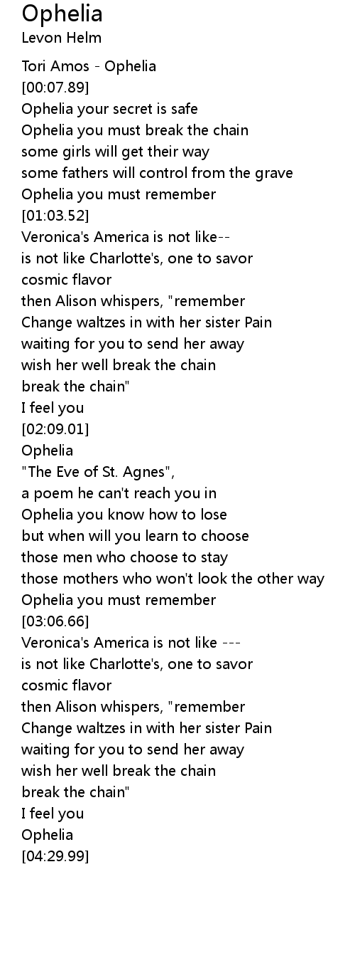 Ophelia you must remember |