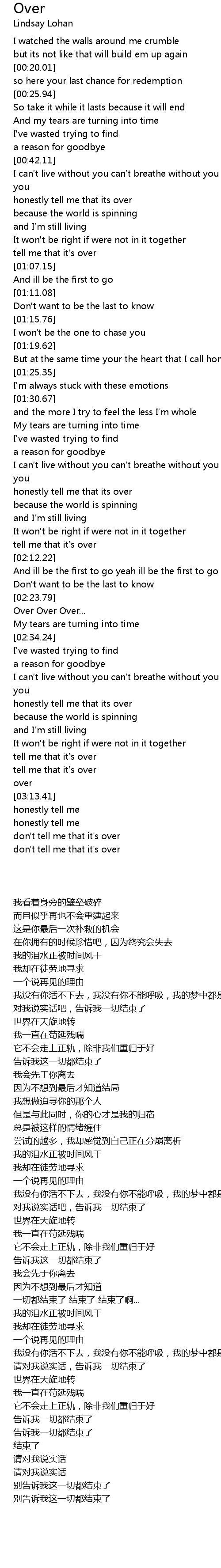 | [02:45.67] | 请对我说实话,告诉我一切结束了 |