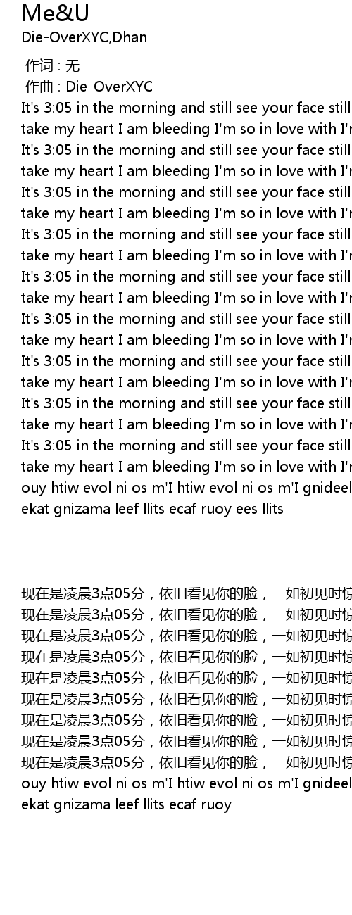 | [00:51.000] | It's 3:05 in the morning and still see your face still feel amazing take my heart I am bleeding I'm so in love with I'm so in love with you |