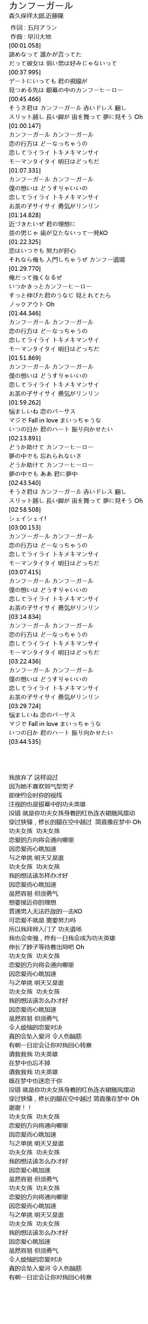 | [00:45.571] | そうさ君は カンフーガール 赤いドレス 翻し |